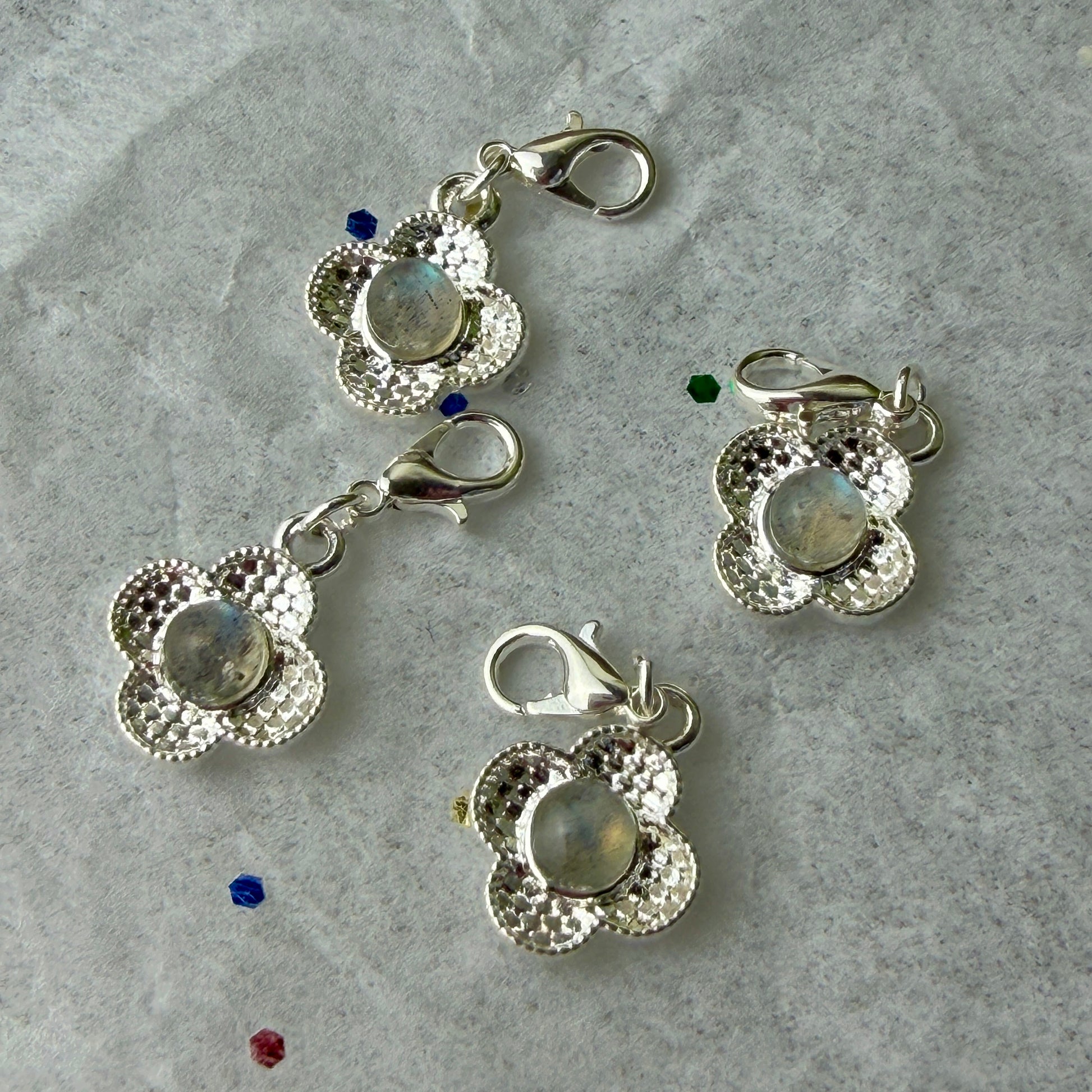 Labradorite Flower Charm | 12mm Crystal Clip-On | Aura Protection & Magic Jewelry Accent