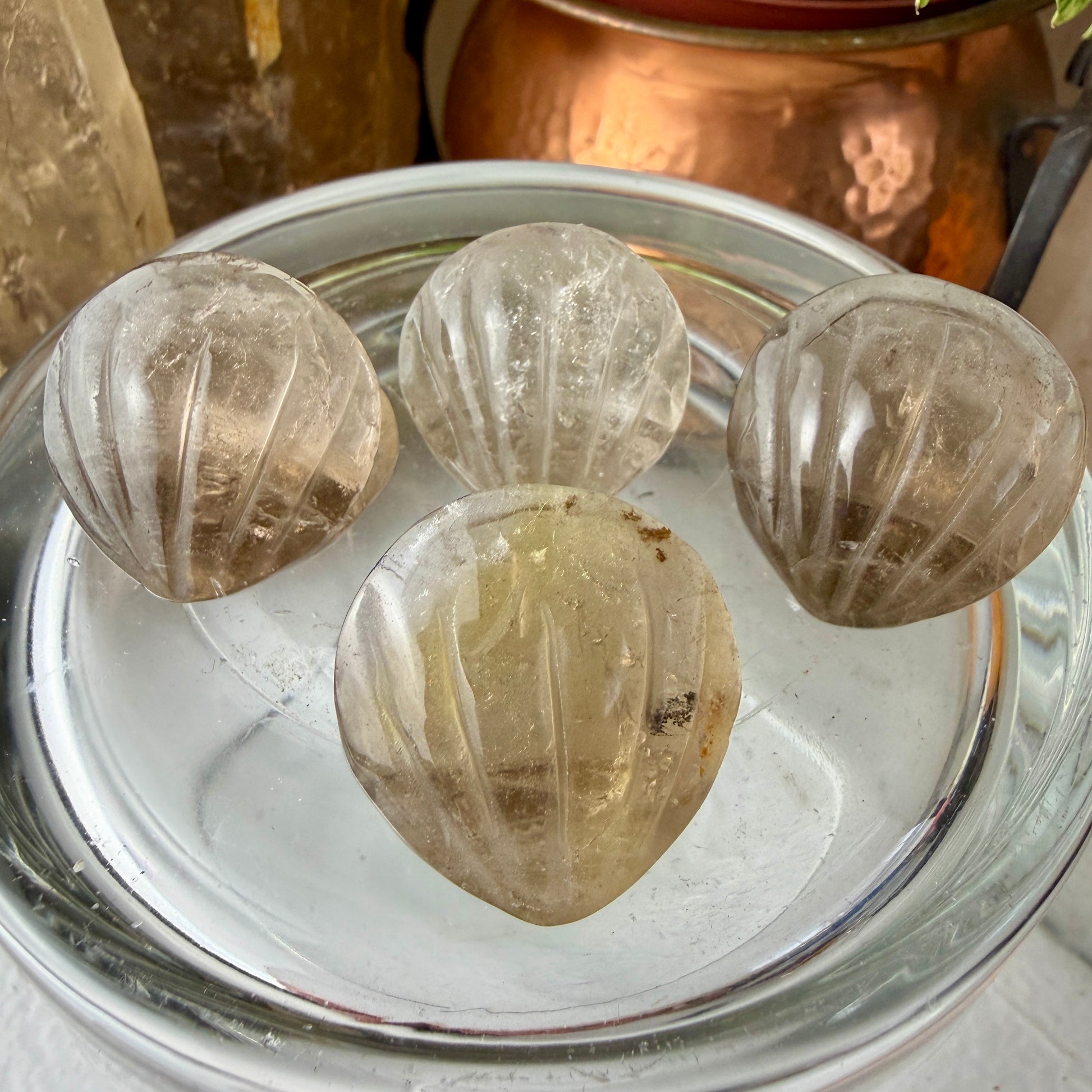 Mini Crystal Clam Shell Carving | Smoky Quartz, Golden Healer, Snowflake Obsidian | 1.2 Inch Intuitive Pick