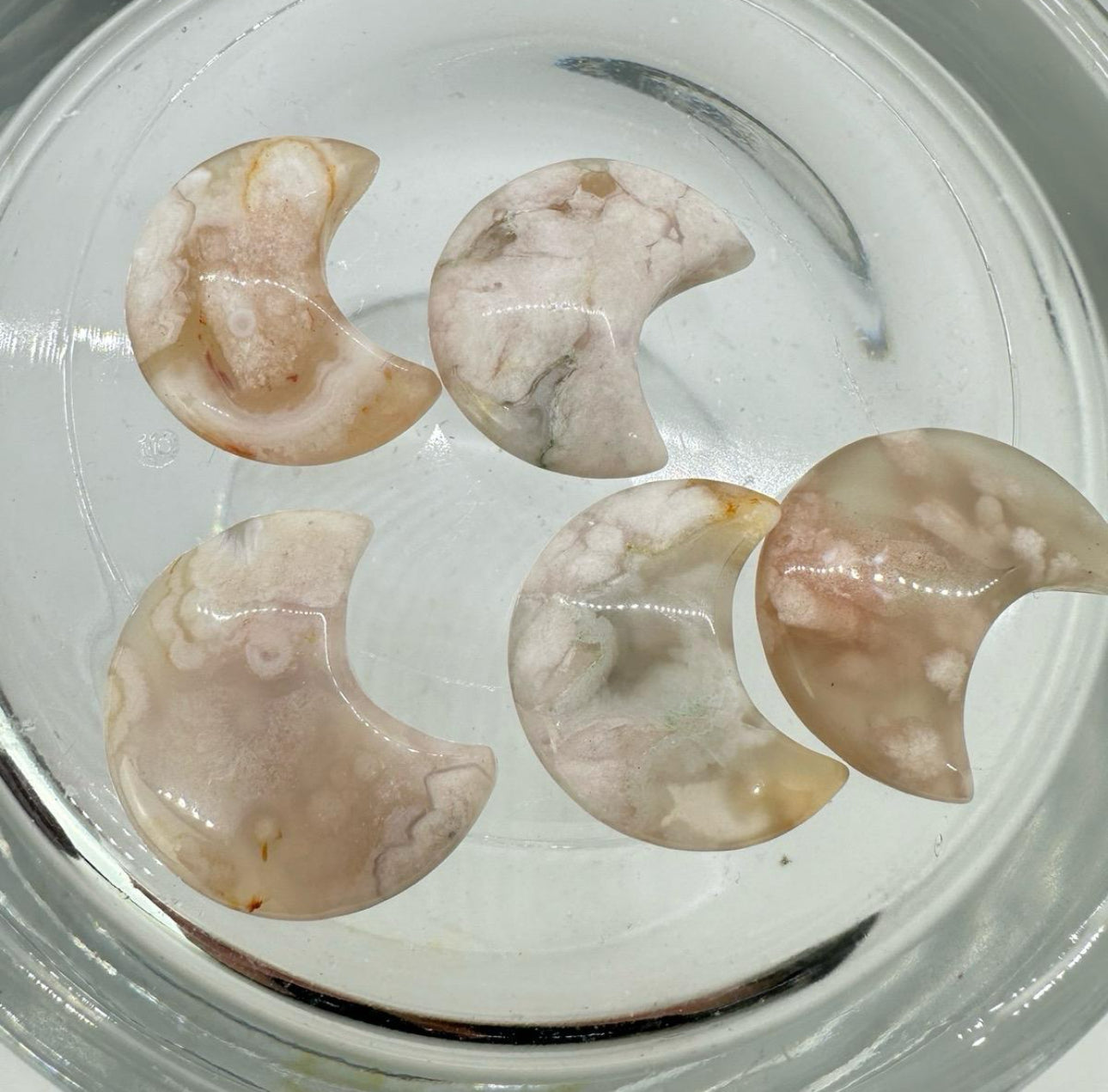 Perfect for adorning your personal altar, meditation space, or for carrying as a personal reminder of new beginnings, this enchanting piece serves to uplift your spirit and encourage emotional balance. Let the Mini Flower Agate Crescent Moon guide you on your journey of self-discovery and renewal while adding a subtle touch of magical elegance to your everyday life.