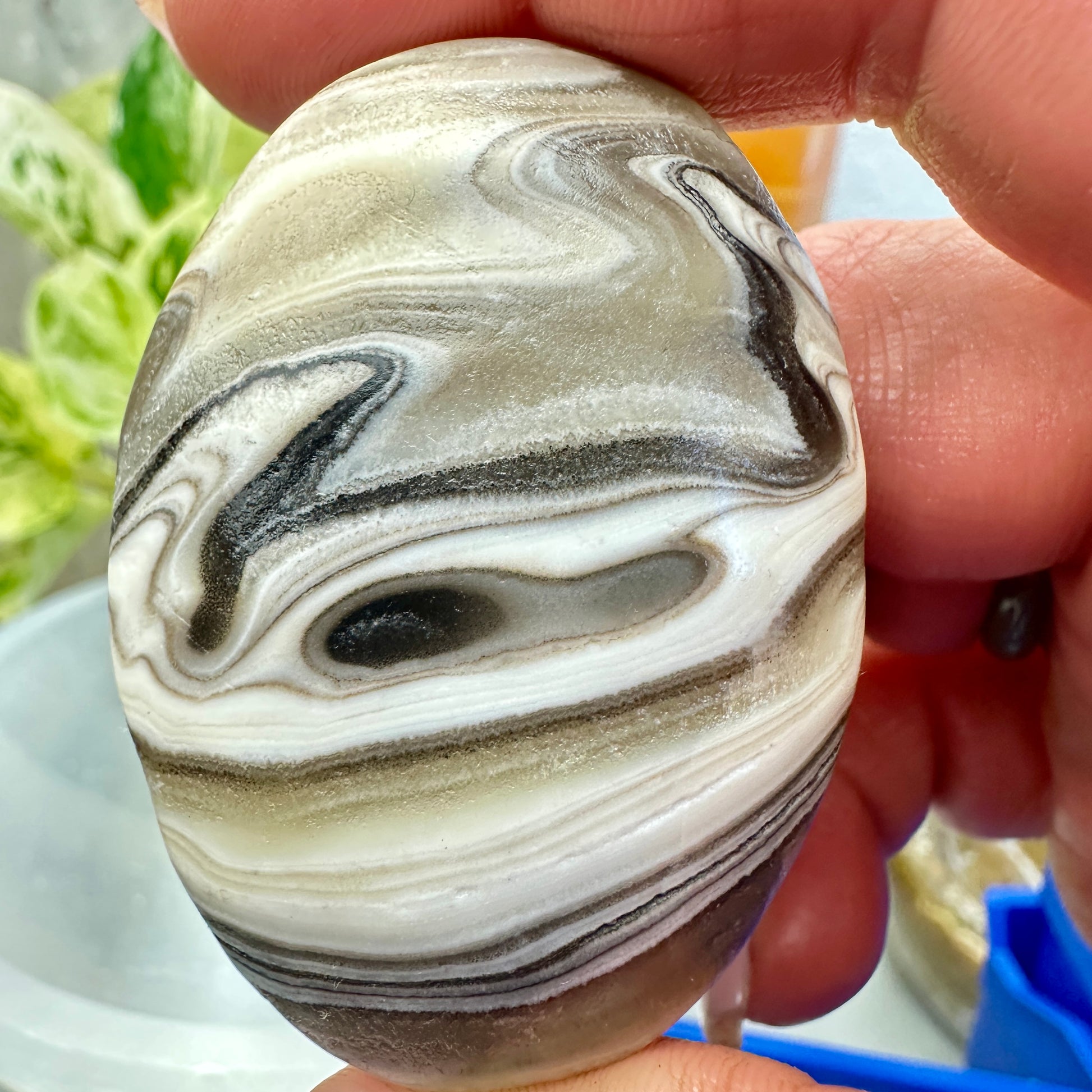 These striking Panda Calcite palm stones feature bold contrasts of creamy white, rich brown, and deep black banding — resembling the gentle strength and peaceful energy of their namesake. Smooth and comforting to hold, they’re perfect for restoring balance to both your space and spirit.
