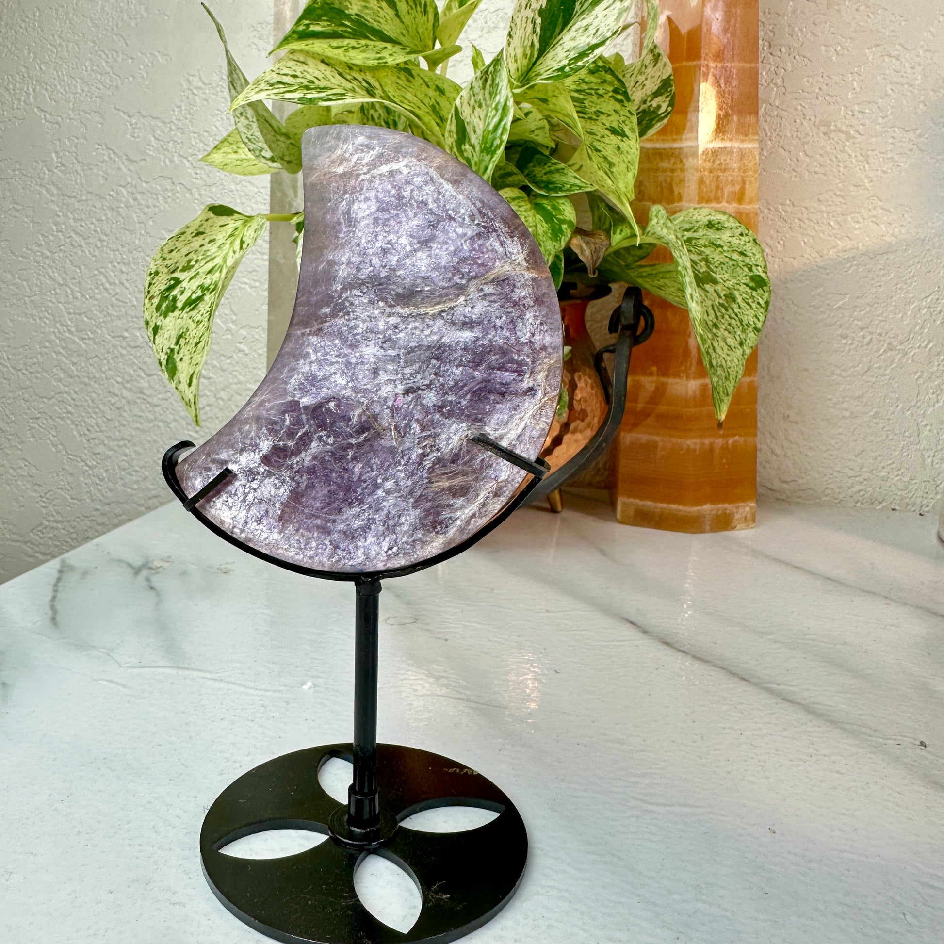 Lithium Mica Lepidolite Crescent Moons on Custom Stand 🌙 Emotional Balance • Nervous System Support • Divine Feminine Energy